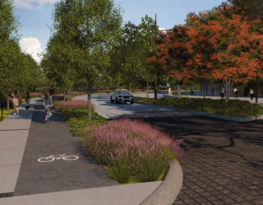 Diseño de paisajismo profesional en áreas verdes, acceso principal y amenidades.