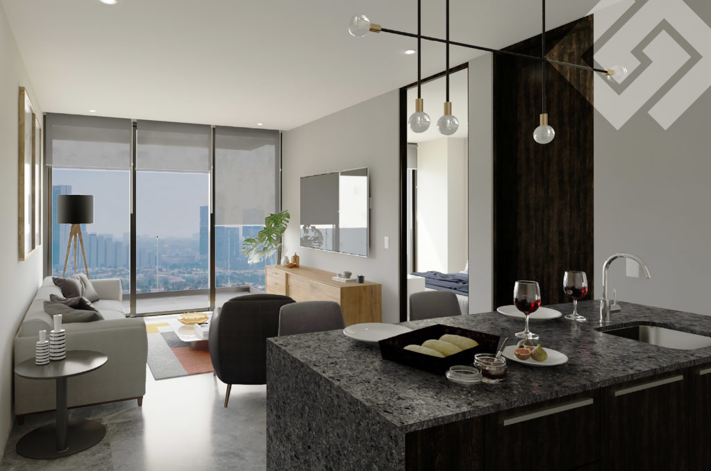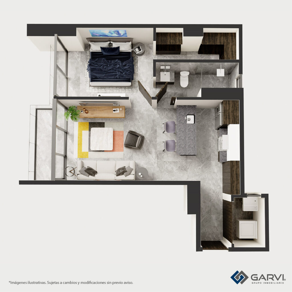 1 Habitación 1 Vestidor 1 Baño completo 1 Balcón 1 Closet de lavado 1 Cajón de estacionamiento
