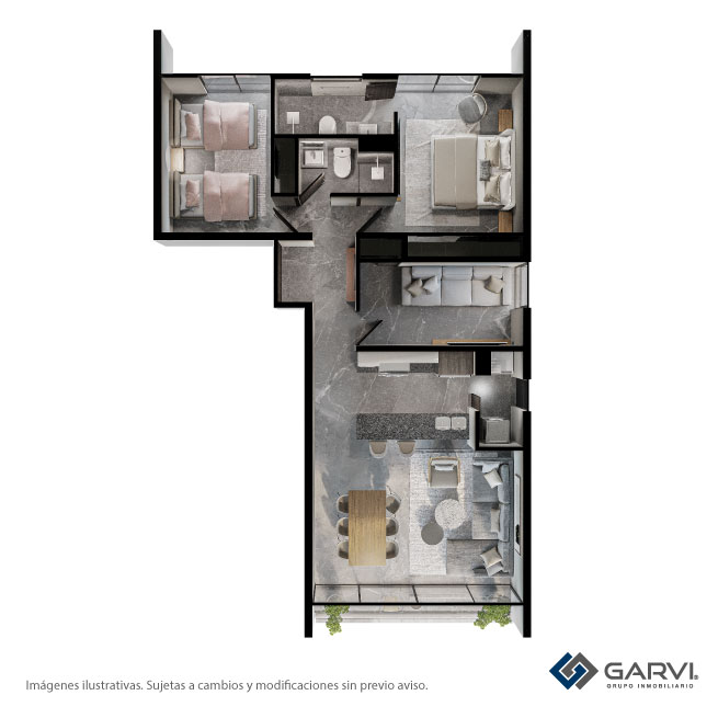 1 Espacio flex 2 Habitaciones 2 Baños completos Vestidor Estufa con 6 quemadores 2 Cajones de estacionamiento Terraza (Opcional)