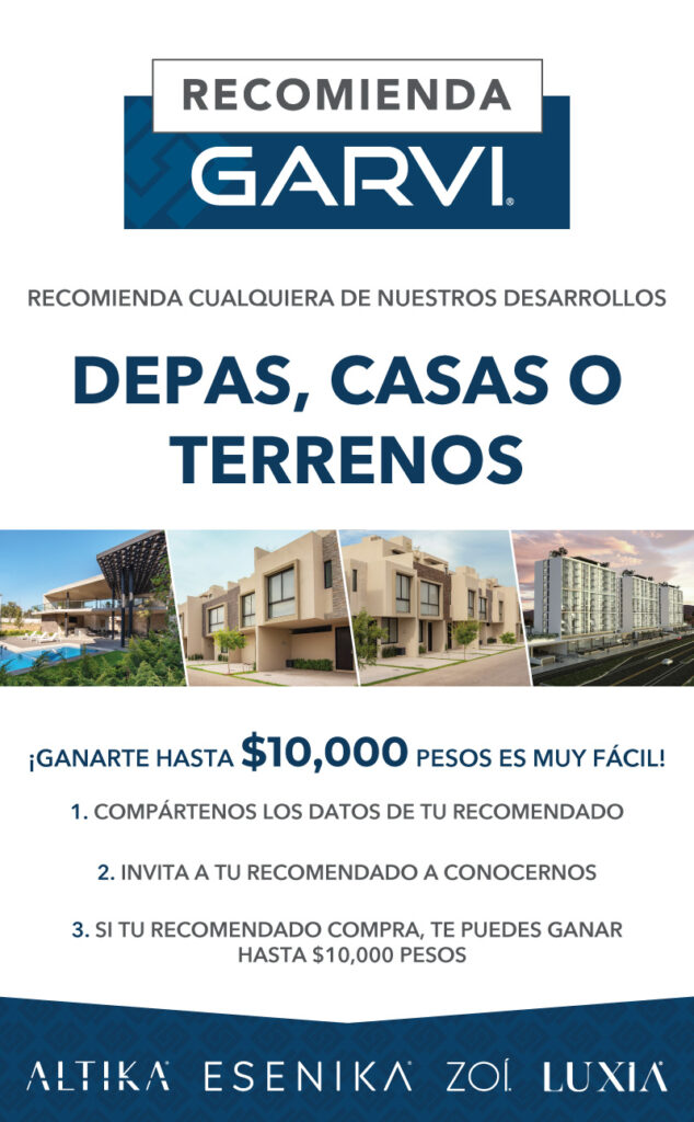 Recomienda Garvi ¡GANARTE HASTA $10,000 PESOS ES MUY FÁCIL! Para participar en el programa RECOMIENDA GARVI por favor llena el siguiente formulario: TUS DATOS (¡GANARÁS HASTA $10,000* PESOS!) Nombre Correo electrónico Teléfono RECOMENDADO (¿A QUIEN RECOMIENDAS?) Nombre Correo electrónico Teléfono Desarrollo de interés Enviar